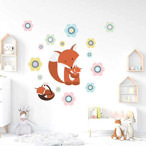 Liška v košíku - nálepky na zeď
