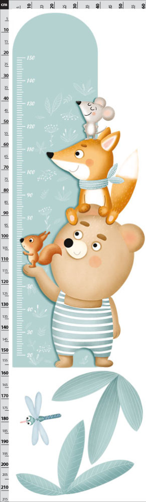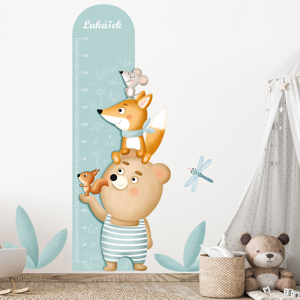 Nálepky na zeď metr lesní zvířátka tyrkysový