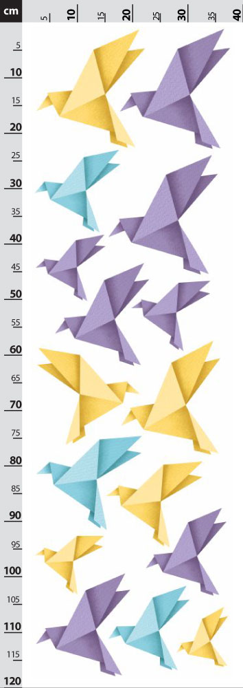 Origami ptáčci - fialové, žluté a modré - nálepky na zeď