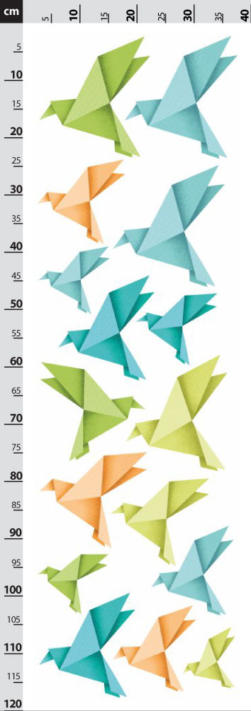 Origami ptáčci - oranžové, zelené a modré- nálepky na zeď