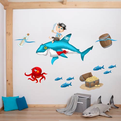 Pirát a žralok - nálepky na zeď