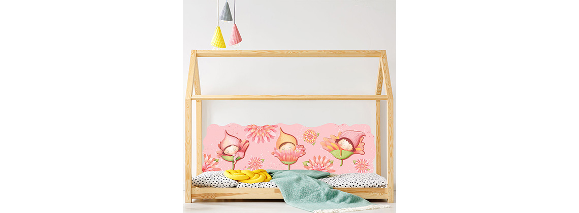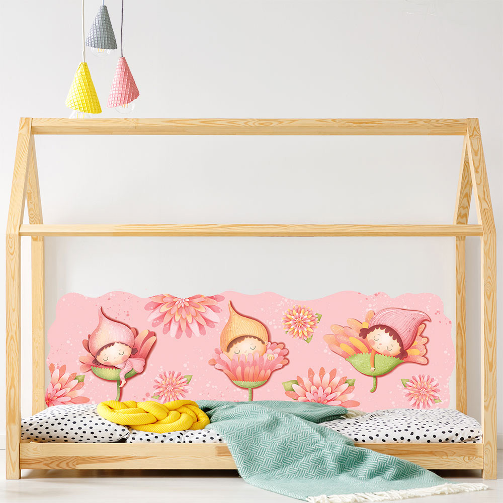 Zástěna za postel skřítci - nálepky na zeď